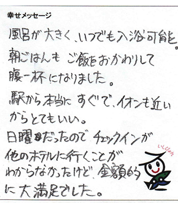この度は、旅館いしのまきにご宿泊いただき、誠にありがとうございます。